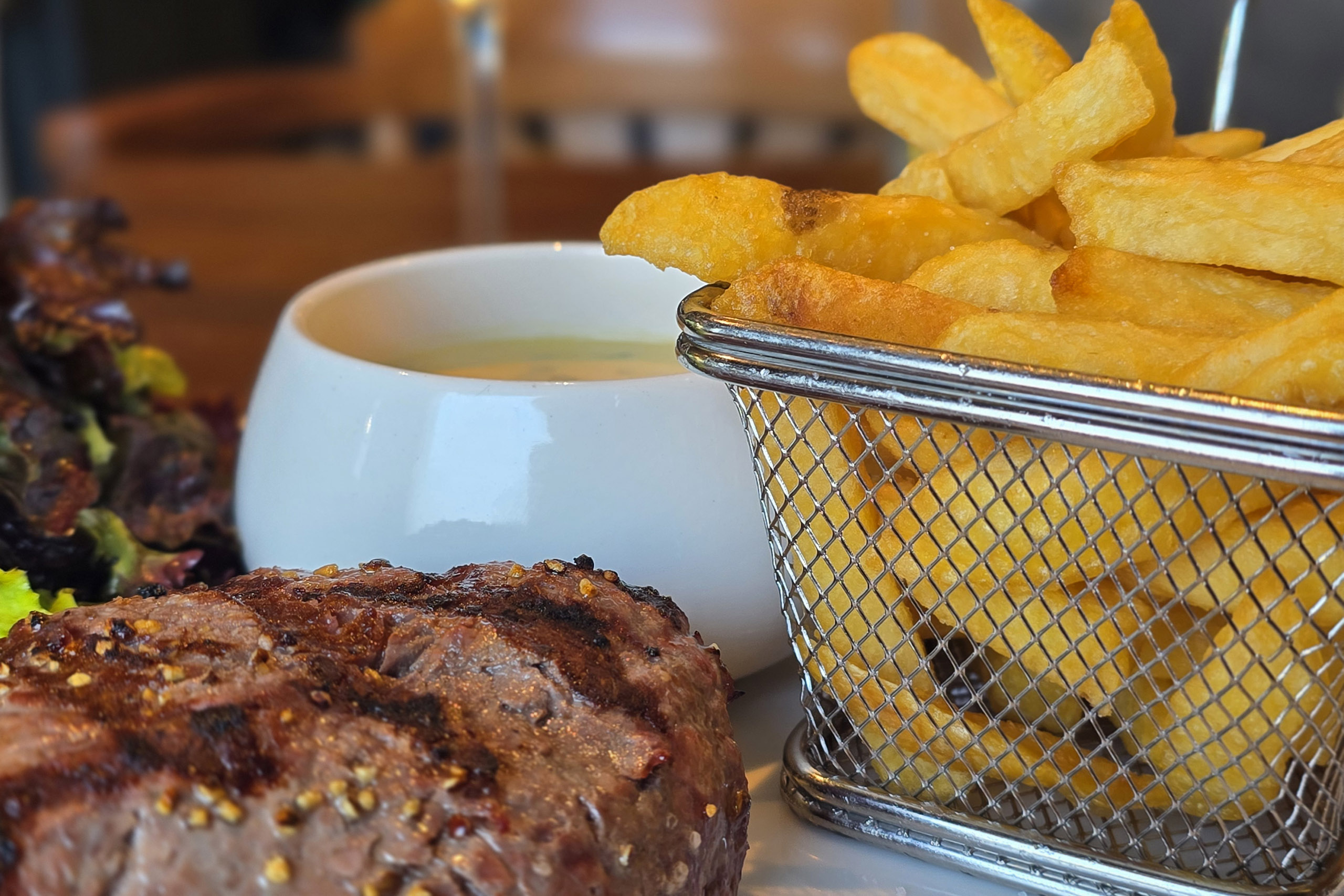 Notre restaurant coup de coeur. On y mange très bien et le personnel est pro. Je conseil les croquettes au crevettes pour commencer et ensuite, la belle pièce de viande pour deux personnes